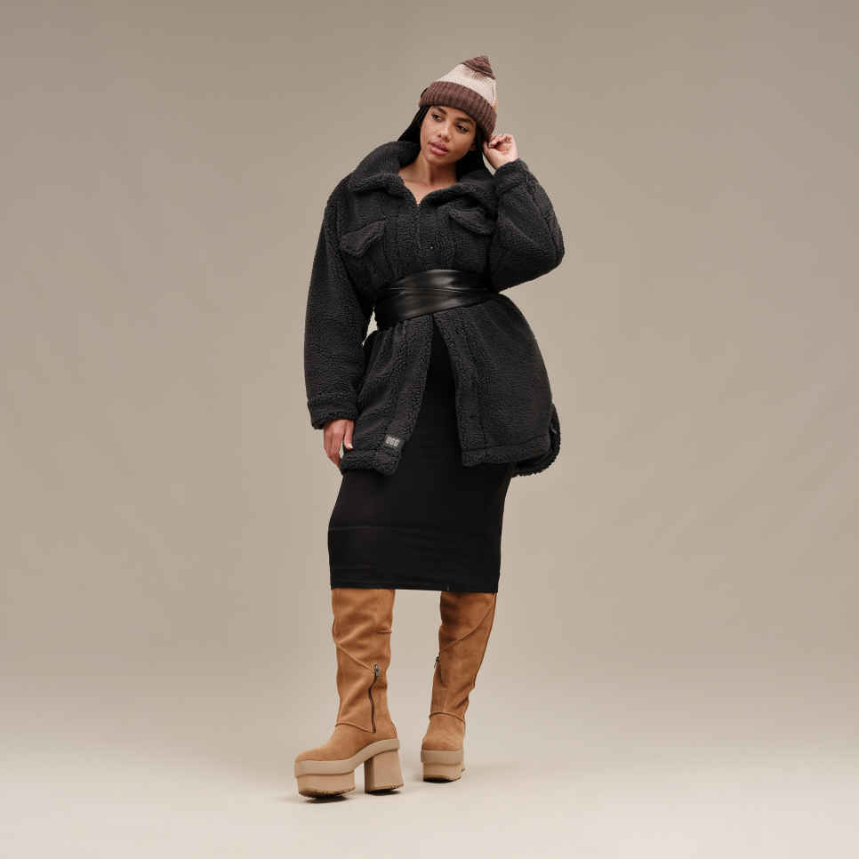 - 10mm curly sheepskin shaft lining, Faux fur Lining, Microfiber lining, Textile lining (51% UNIFI RPET, 49% polyester)